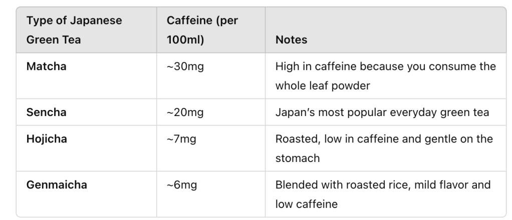 As you can see, not all Japanese teas are low in caffeine. In fact, matcha contains more caffeine than many people expect!